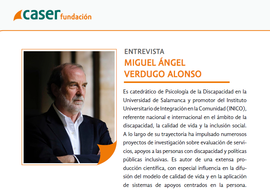 Miguel Ángel Verdugo Alonso, catedrático de Psicología de la Discapacidad de la Universidad de Salamanca ha sido entrevistado en la revista Actas de Coordinación Sociosanitaria, una publicación bianual de la Fundación Caser dedicada a la difusión de conocimiento científico y buenas prácticas en el ámbito de la atención integrada a las personas en situación de dependencia, discapacidad y envejecimiento.