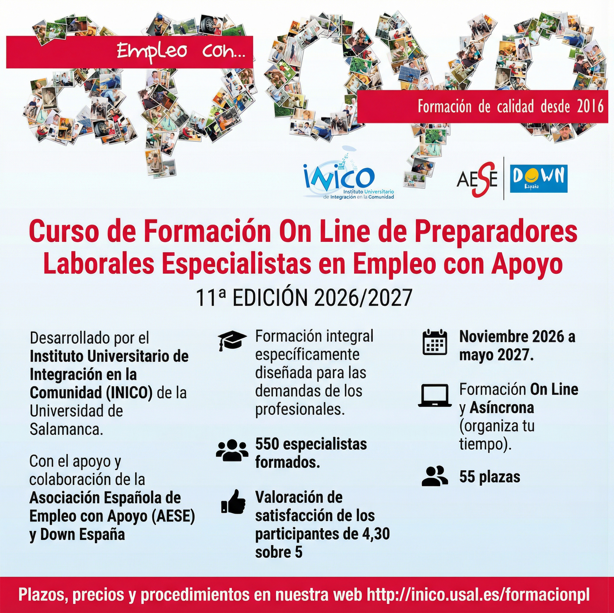El Instituto Universitario de Integración en la Comunidad (INICO) desarrollará una nueva edición del Curso de Preparadores Laborales Especialistas en Empleo con Apoyo, una formación de referencia en el ámbito de la inclusión sociolaboral.